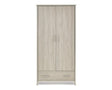 Textured oak wood effect finish; One full width cupboard with two hanging rails & pair of soft close door; One full width 33L capacity drawer on smooth gliding, metal runners; Stylish brushed metal handles