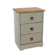 Our Classic Corona Style 3 Drawer Bedside Cabinet is an Ideal choice for those of us who appreciate real wood. It is generous in size and with 3 useful drawers offers plenty of useful storage. Its styling features a grooved plank effect top with an Antique waxed effect finish which emphasises the natural graining of the natural pine. the cabinet is also made of real wood which is coated with a subtle Grey washed wax finish with stunning gunmetal diamond shaped dropleaf handles. Drawer bases and cabinet backs are made from real wooden hardboard for added strength and stability so you can enjoy using your furniture to its utmost.