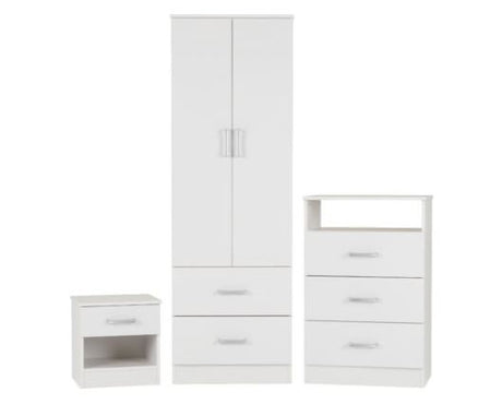 Bardalona Trio Wardrobe, Chest & Bedside White Gloss