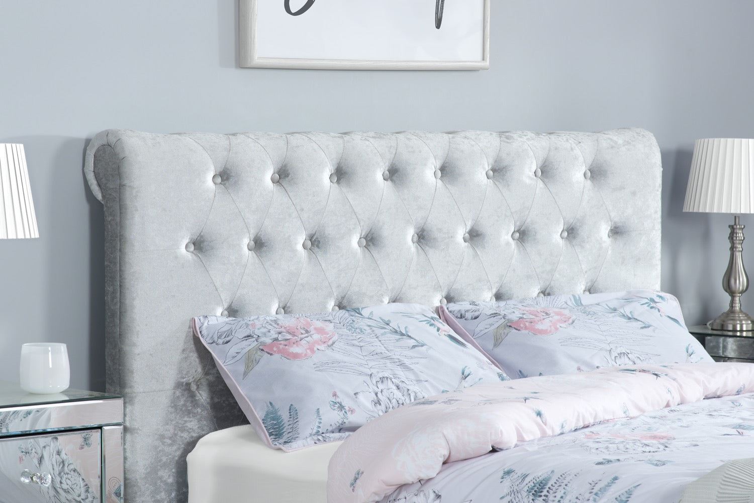 Sienna Small Double Bed - Crushed Velvet Silver is backordered and will ship as soon as it is back in stock.