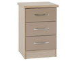 Nevada 3 Drawer Bedside Chest - Oyster Gloss/Light Oak Effect Veneer – tradegoods.co.uk
