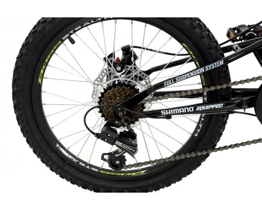 The Boss Stealth is the best selling mountain bike in the entire range, and when you check out what spec you get for the price, it's no surprise! Following it's popularity, we developed this smaller 20" version for younger riders - why should adults have all the fun! With a fresh look for the season, the Stealth 20 makes its debut with a bold and brash look, ready to rip up your local trails. The spec speaks for itself – 6 speed Shimano gearing, front and rear disc brakes and dual mudguards give you the kit needed to tackle any terrain, whilst front and rear suspension make for a comfortable ride and soak up the bumps. Deep section wheel rims, off-road MTB tyres and strong disc hubs make the wheels strong and sturdy whilst grippy 1.95" tyres will pull you through anything. The rear suspension unit can be adjusted to dial-in the required amount of suspension, whilst the front suspension fork remains in action at all times, poised and ready to take whatever is thrown at it. Stand out in the crowd, be understated but be bold. The Stealth has it all! Suitable for inside leg measurement of 51-64cm/20-25"
