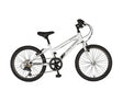 The Falcon Starlight rigid 20" has been designed with junior riders aged 6-9 years in mind with a carefully considered frame geometry that helps ensure a comfortable and safe riding position. The hi-tensile steel frame is strong and durable while the lightweight rigid fork provides a stable ride for children not used to suspension, whilst reducing vibrations from the pavement thanks to the curved lower section. As well as being great looking, the Starlight has a great spec to match. 6-speed gearing is powered by a Shimano rear derailleur and Revoshift shifter, ensuring smooth gear changes without losing grip of the handlebars. The double-sided chainwheel guard protects fingers and clothes and prevents the chain from slipping off the chainring. MTB style pedals provide reassuring grip and the soft compound handlebar grips are durable and comfortable to hold. Braking is taken care of by reliable front and rear V-brakes with specially designed reach-adjustable brake levers that can be adjusted to accommodate smaller hands. The Starlight is ideally suited to grow with young riders thanks to the longer 250mm seat post, adjustable saddle fore and aft position and quill handlebar stem that can be adjusted up and down to suit. The wheels are assembled with strong yet lightweight alloy rims and all-surface tyres for riding across a variety of terrain. The Falcon Starlight really is a cut above the rest and the perfect bike for young riders looking to progress and learn how to use gears. Most suitable for children aged 6-9 years. Inside leg measurement of 51-64 cm/20-25".