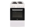 4 x Electrical Solid Cooking Zones. Front Facing Control Knobs. Freestanding Electric Cooker. Single Glass Door. White Enamel Finish. 61L Cooking Capacity. 1.4kW Grill Function. Oven Light. Grill Element. Energy Rating : A