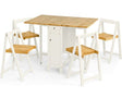 Open - 120cm W x 80cm D x 76cm H; Closed - 35cm W x 80cm D x 76cm H; Four chairs fold for storage inside the table; A great space saving alternative to a traditional dining set; Sturdy hardwood construction;