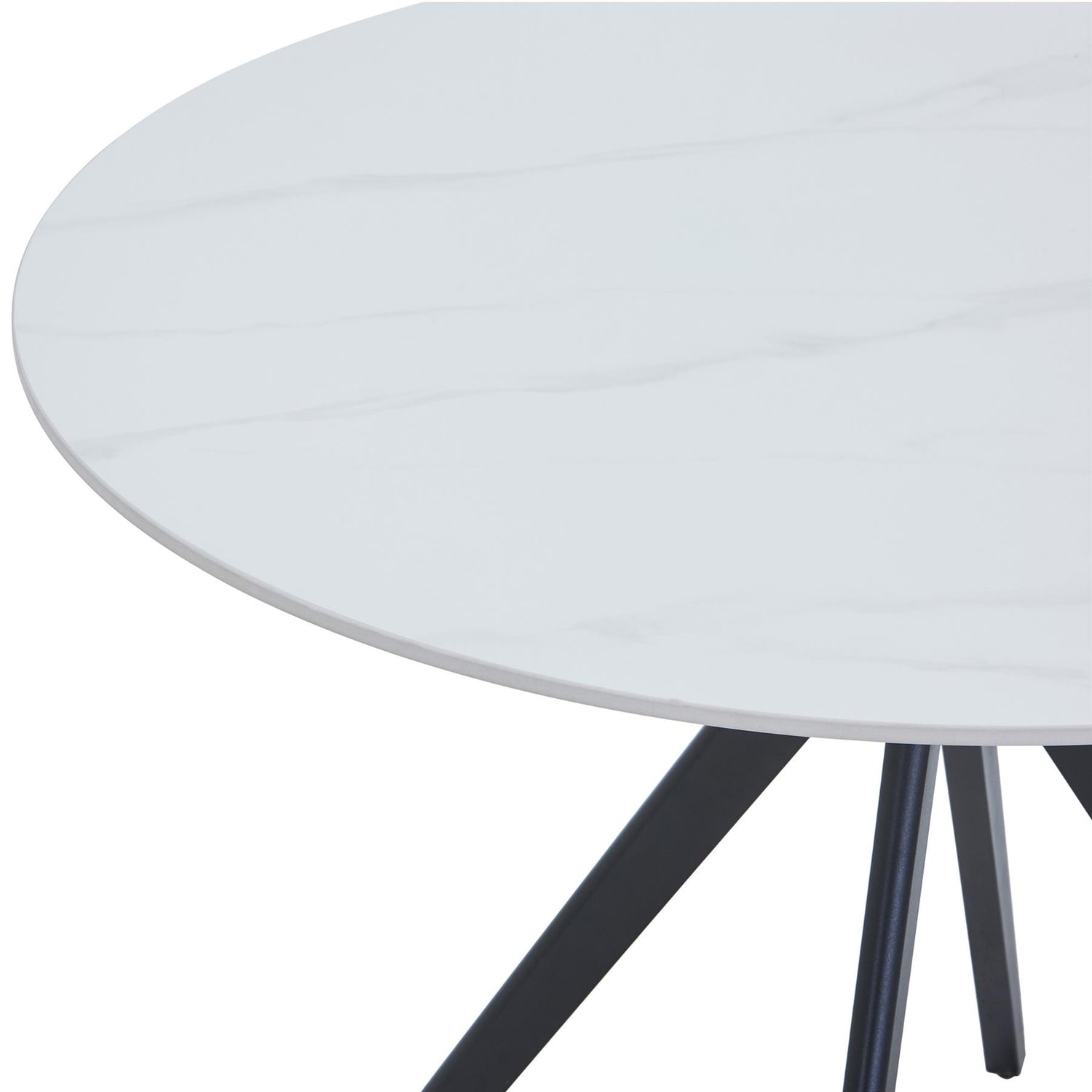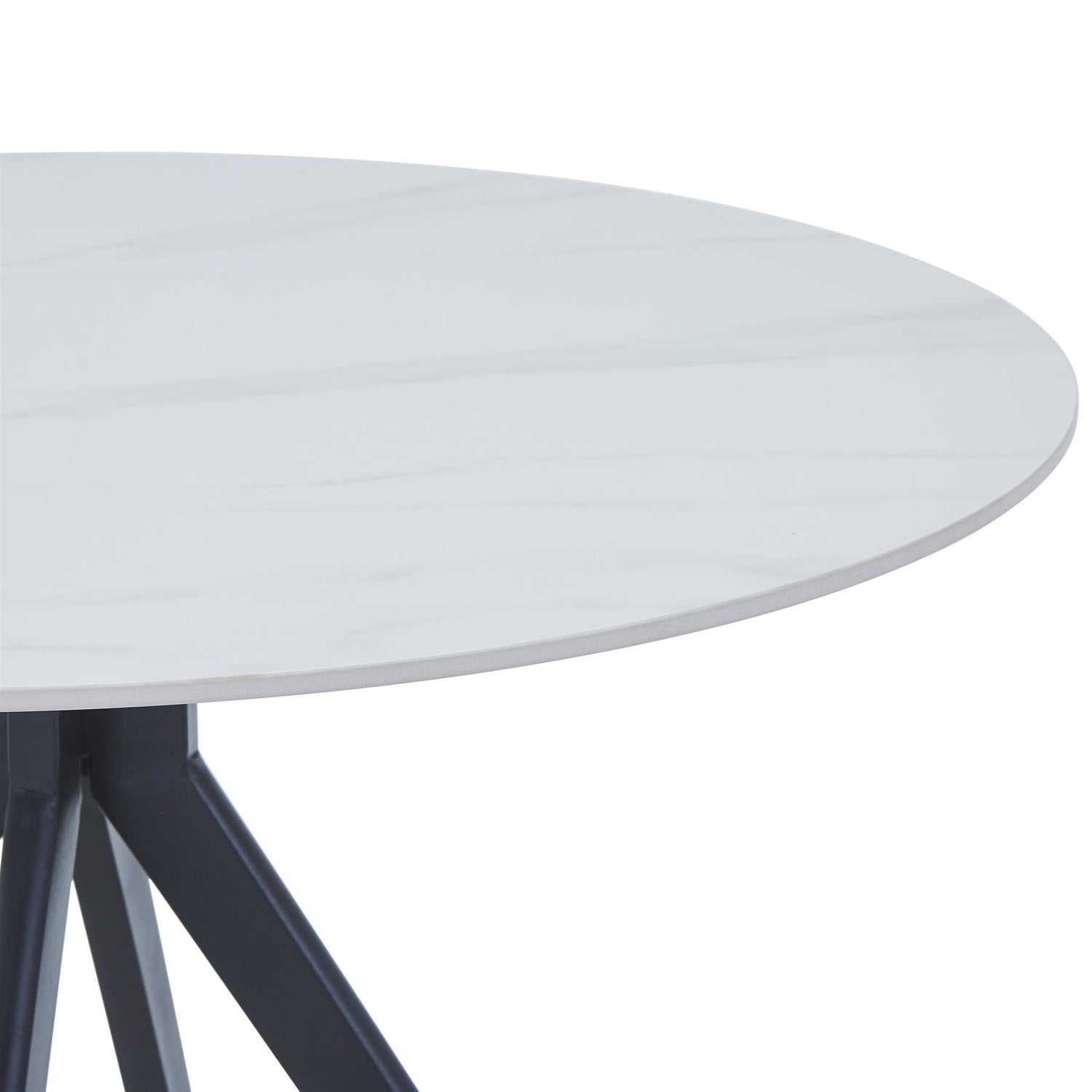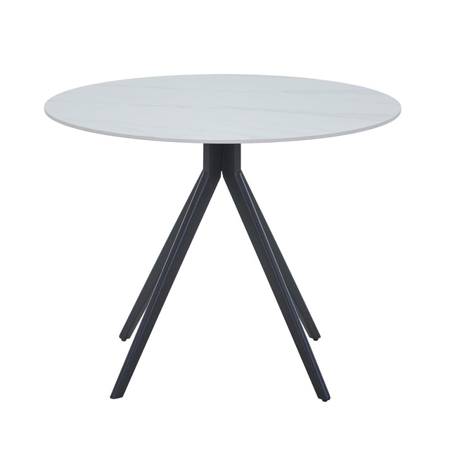 Aspen round dining table, gloss white sintered stone table top with black pedestal leg