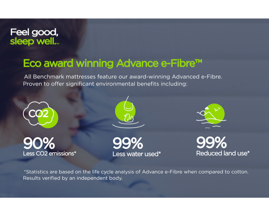 Eco award-winning comfort technology; 5 Year guarantee; Roll packed reducing package size by approximately 70%; Soft to touch luxury knitted cover with quilted finish; Breathable comfort layers to reduce moisture; Open cell structure for temperature regulation; 100% foam free, free from harmful chemical emissions; Sustainable eco-friendly design; Made in the UK to British and European safety standards