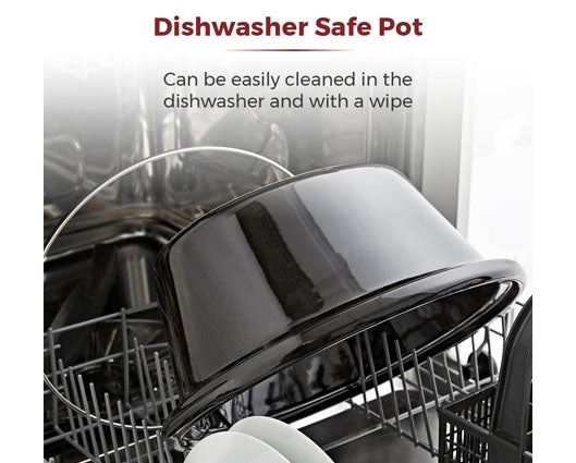 300W Stainless Steel Slow Cooker 6.5L capacity for up to 5 portions Stylish stainless steel design Removable pot for serving and easy cleaning Easy to use dial and power indicator light Easy clean dishwasher safe pot Three heat settings to suit your ingredients and preferred time Cool touch handles for added convenience and safety