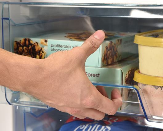 2 year parts and labour guarantee 4* freezer 3 large capacity storage drawers Reversible door Adjustable feet Net freezer capacity: 86 litres