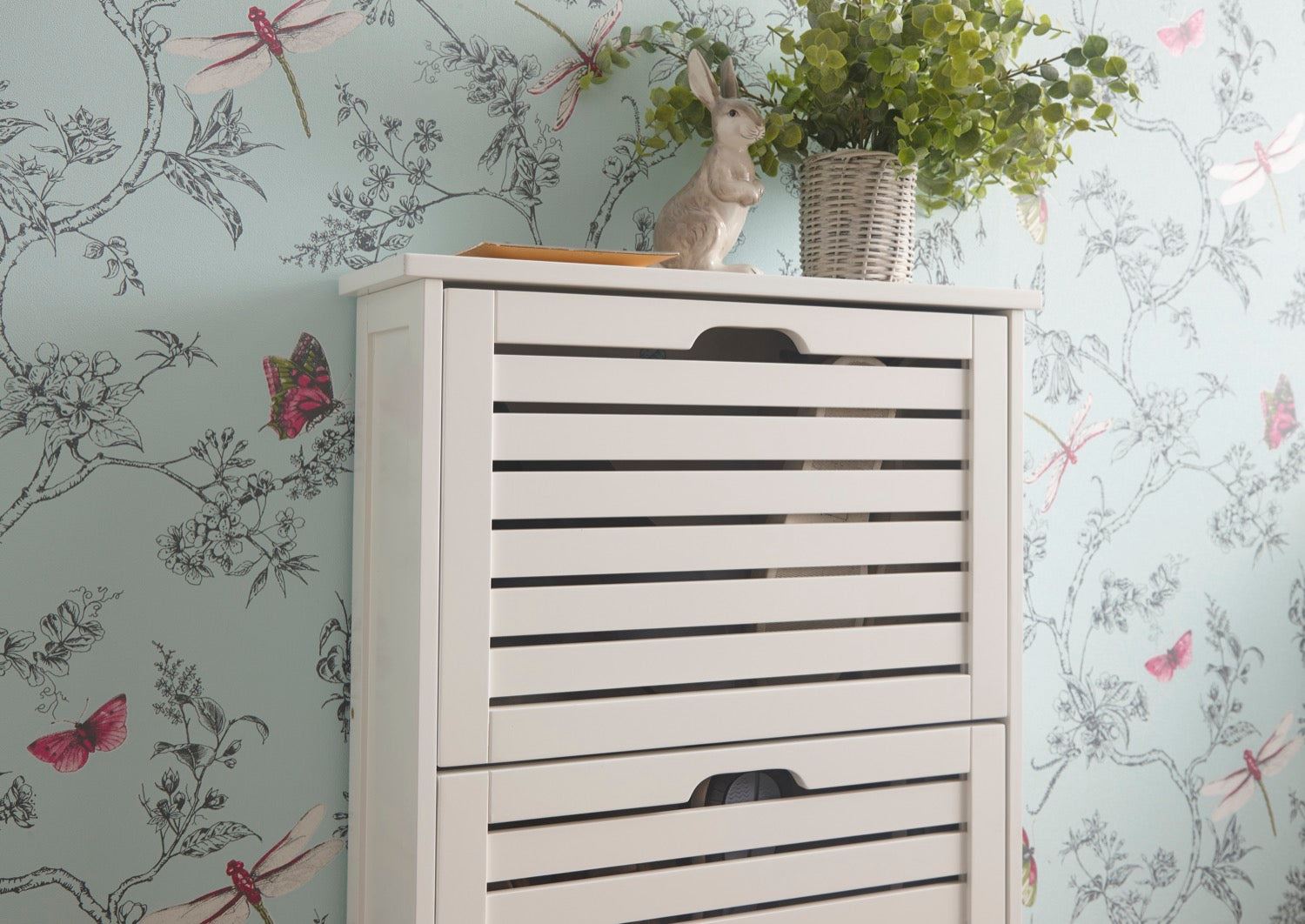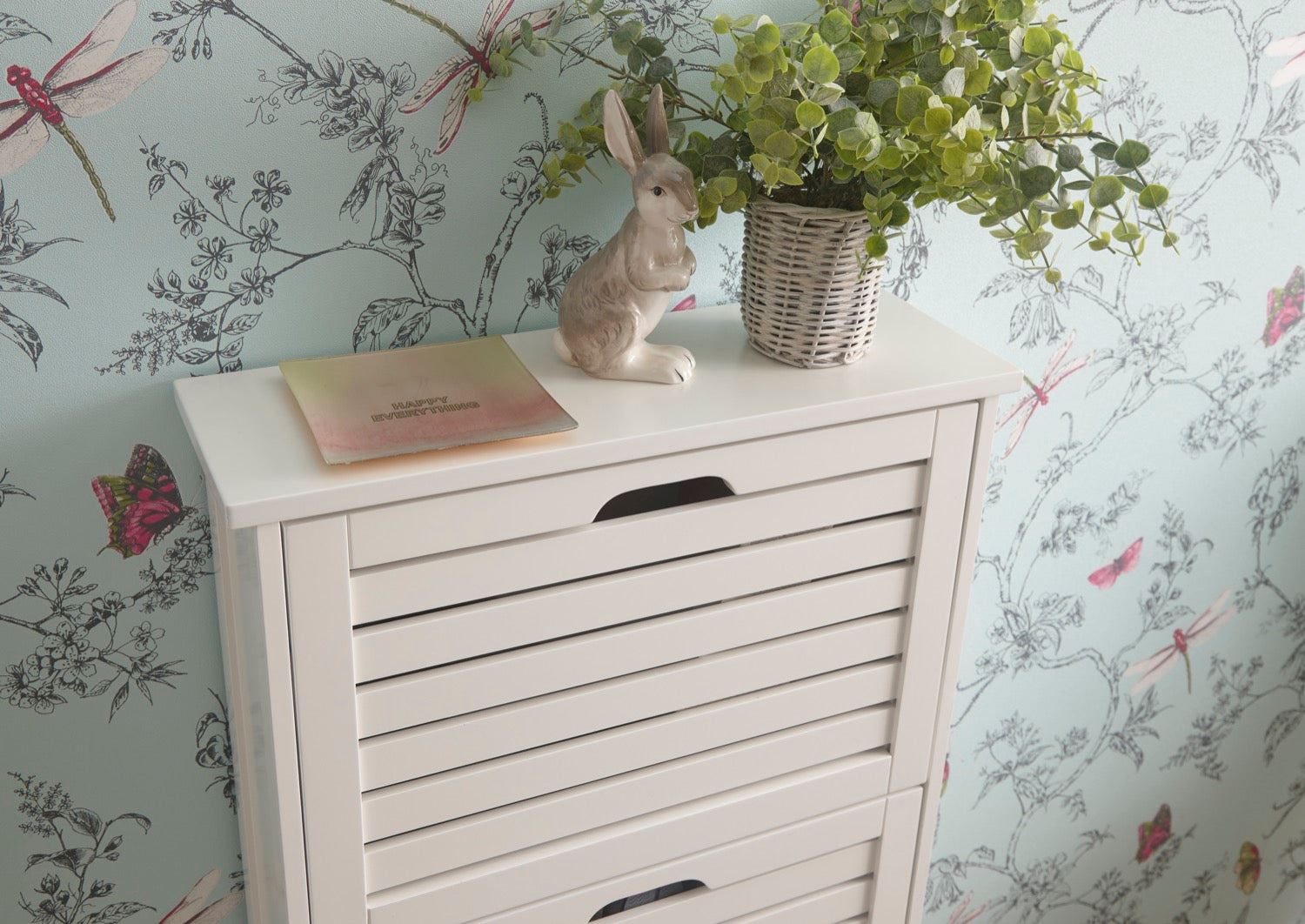 Bergen three tier shoe cabinet white is backordered and will ship as soon as it is back in stock.