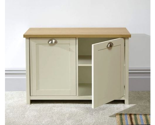 A place for everything - and everything in its place! This smart Lancaster storage unit is perfect for small spaces, helping to keep your floors clear of clutter. The slender design is ideal for siting against a wall and incorporates two twin-level shoe compartments. The Cream painted finish is complemented by an oak-effect top.