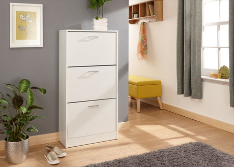 Stirling three tier shoe cabinet white