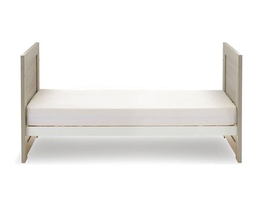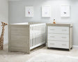 Cot bed features: Textured oak wood effect finish; Adjustable, three-position base height; Teething rails ensure delicate teeth are protected; Suitable from birth to approximately four years old. Changing unit features: Three full depth 33L capacity drawers on smooth gliding, metal runners; Stylish brushed metal handles; Changing area accommodates a changing mat up to 76 x 46cm; Discreet spring pins allow the changing area to be removed when no longer required; Textured oak wood effect finish; Coordinating double wardrobe, available separately. Cot bed dimensions: 92 x 77 x 145cm; Changing unit dimensions: 92 x 83 x 50cm.