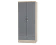 Nevada 2 Door 1 Drawer Wardrobe - Grey Gloss/Light Oak Effect Veneer