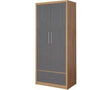Seville 2 Door 1 Drawer Wardrobe - Grey High Gloss/Light Oak Effect Veneer