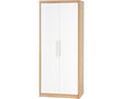 Seville 2 Door Wardrobe - White High Gloss/Light Oak Effect Veneer