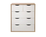 White Drawer Fronts with Cut Out Handle Design. Metal Drawer Runners Provide Smooth Opening. Modern Design Chest of 3+2 Drawers.
