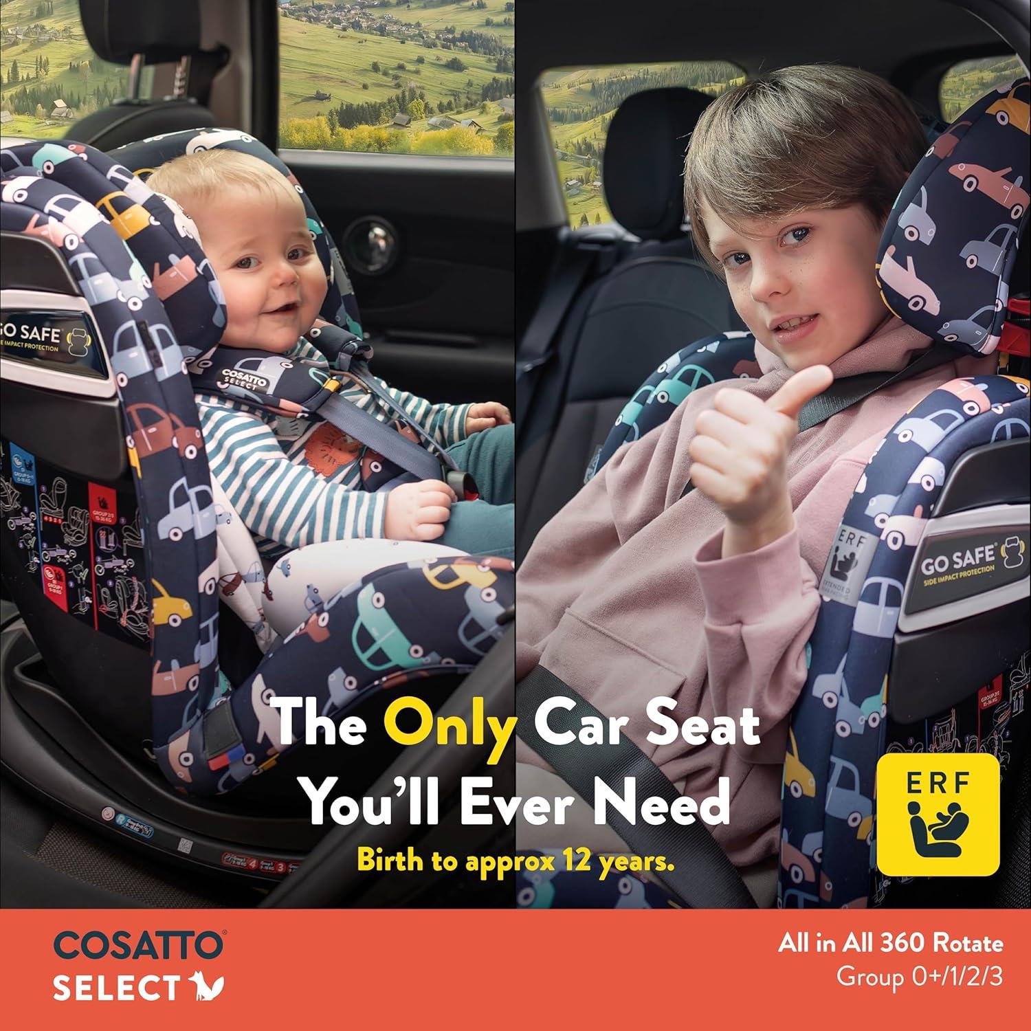 Wondering which car seat does it all? The All in All 360 Rotate from Cosatto is here. With ISOFIX fitting options and suitable throughout all stages up to 36kg (approx. 12 years old), the All in All 360 Rotate comes with all the great features including side impact protection as well as an excellent 360 rotate feature for easy access. What's in the Box? 0+123 Car Seat with Integrated Base Chest Pad Tummy Pad Seat Liner Newborn Seat Insert 4 Year Guarantee
