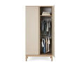 One large cupboard space fronted by no-handle doors; One internal full-width shelf; Two internal hanging rails; Sleek modern craftmanship with two-tone colourway