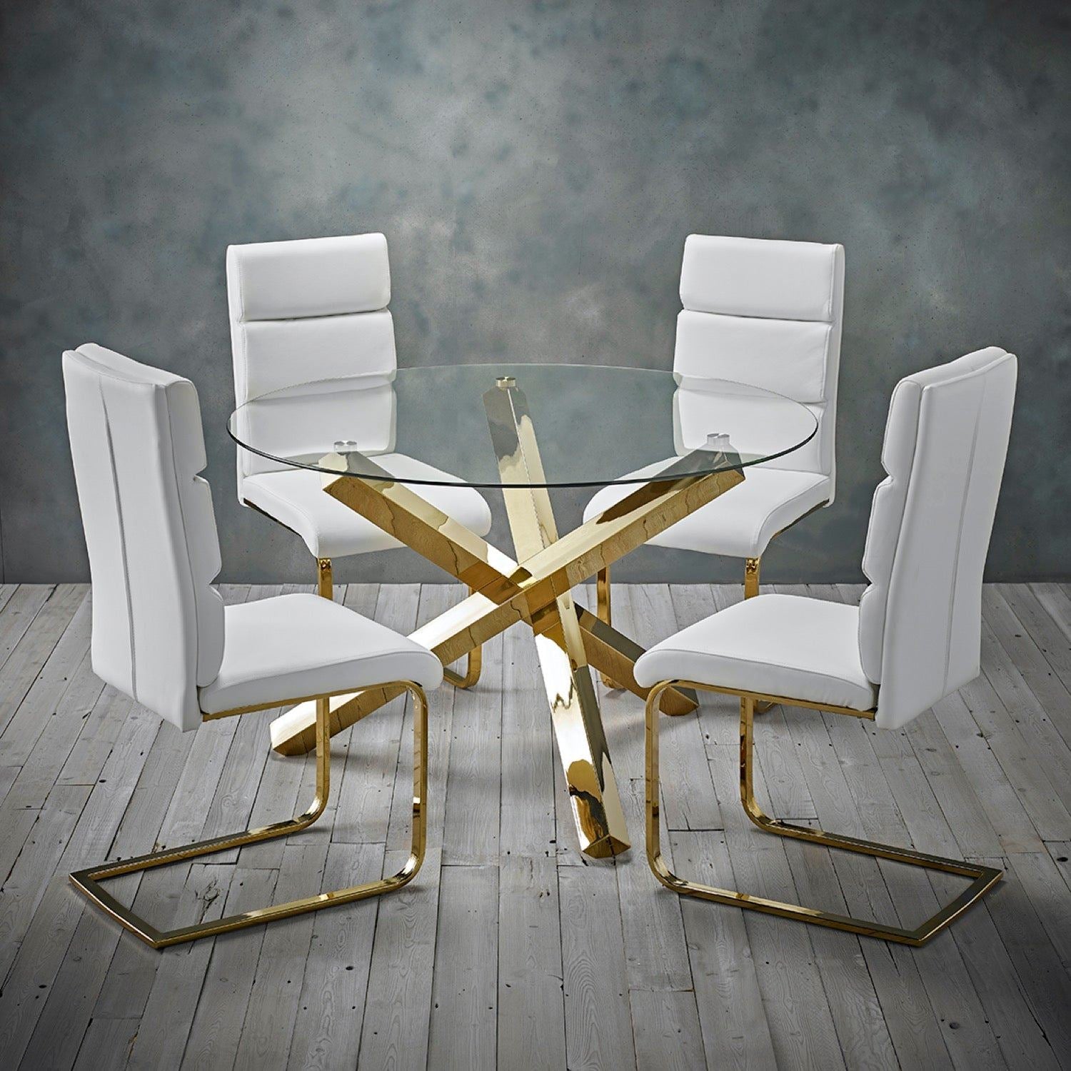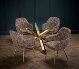 Capri Dining Table Glass Top With Gold Legs is backordered and will ship as soon as it is back in stock.