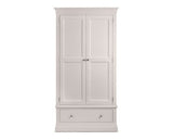 Finished in a striking light grey; Elegant French design, suitable for both contemporary or traditional decor. Crafted from Pine and MDF with brushed steel handles. Featuring a generous hanging space, along with a full width drawer for bulkier knitwear.