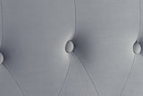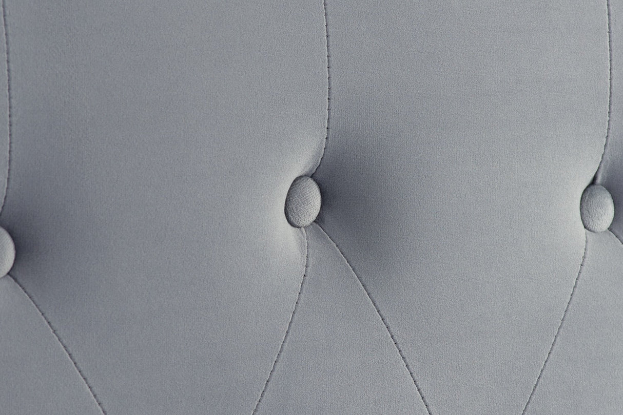 The Cai ottoman bedstead is upholstered in a grey fabric and features a button detailing headboard.