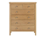 Crafted from solid oak and oak veneers, this frame ensures long lasting durability; Round silver knobs; Featuring 2 small drawers and 4 large drawers;