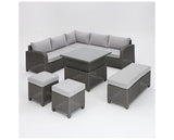 Hadley D.GreyRattan Crnr 5Seat RisingTable+2 stool+bench+Cov
