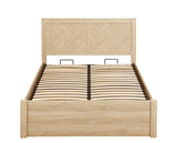 The Herringford Ottoman Bed marries functionality with contemporary elegance, presenting a clever solution for space-saving and style. It is crafted with a durable particleboard structure, finished with a sophisticated faux oak laminate that mimics the rich texture of real wood. The bed's base lifts effortlessly to reveal a substantial storage compartment, perfect for keeping your bedroom clutter-free.