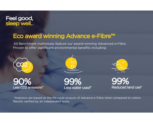 These springs are cushioned with supportive layers of Rebound e-Fibre and super soft Advance e-Fibre for improved moisture and temperature regulation.