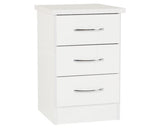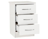Nevada 3 Drawer Bedside - White Gloss is backordered and will ship as soon as it is back in stock.