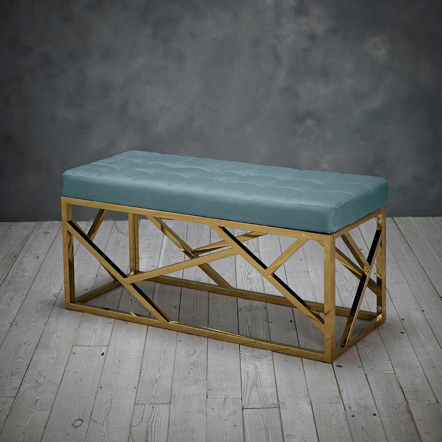 Our Renata bench comes in 5 colour options, a soft upholstered seat pad resting on a gold geometric style frame. This bench will add a little vintage glamour to any home.