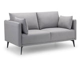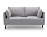 Upholstered in a platinum wool effect fabric; Removable Padded cushions; Black Metal Legs; Simplistic, yet eye catching piping;