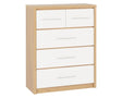 Seville 3+2 Drawer Chest - White High Gloss/Light Oak Effect Veneer