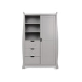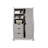 One full length cupboard with two hanging rails & soft close door Three half width, height adjustable shelves Three half length drawers on smooth gliding, metal runners Easy to use recessed handles Elegant sleigh design coordinating with the rest of the Seren furniture range